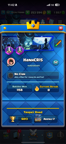 Краткое описание: 🔥CR453 ❤️8600 🏆 LV52 WITH GIANT DECK, 1K8 GEM | 9 EVO | 8 CARD LV15, 4 CARD LV14 ❤️