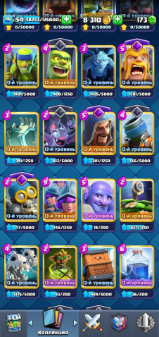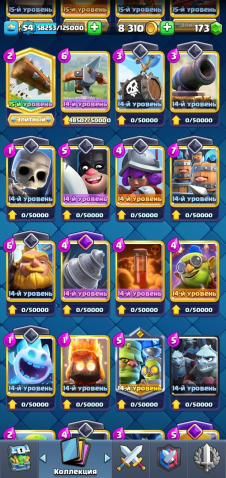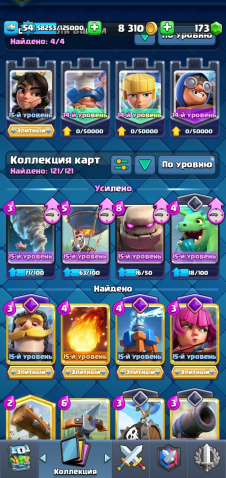 ✔️ 6 карт прокачаны до 15 уровня (включая Башню Принцессу 👑).