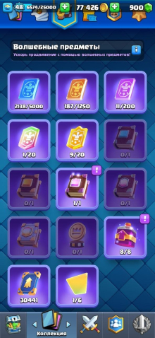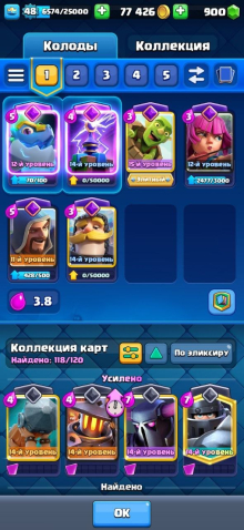 На аккаунте почти прокачен классический спел бэйт и пару самодельных колод все фото ниже