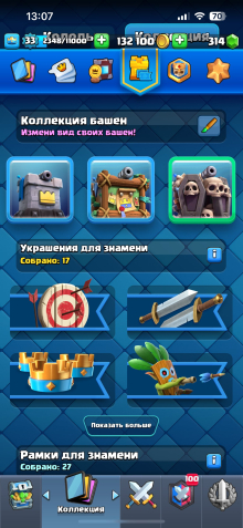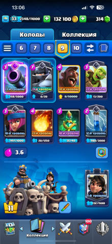 Подробное описание: 💦6 EVO💦 [🏆7530🏆] [🃏118/125🃏] [🤓27/245🤓] [3 башен] [5 13 уровень]