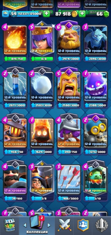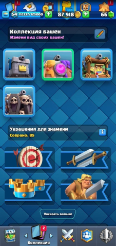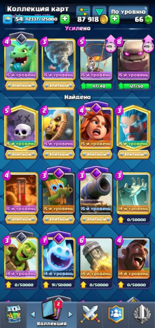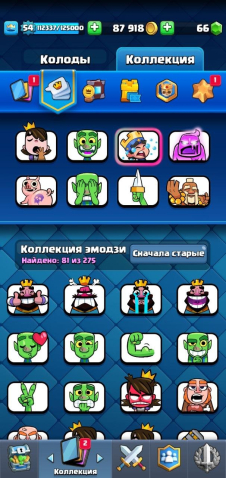▫️ 12 Эволюций, 15000 🏆, 81 Эмодзи, 7 карт 15lvl, 17 карт 14lvl, 121/121 карт.