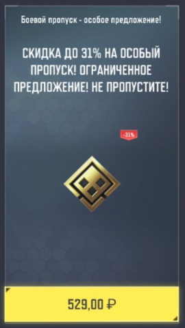 Краткое описание: Боевой пропуск — особое предложение за 529₽: -31%
