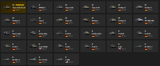V - 1 Tiger II (H) Sla.16, M48A2 C, Tiger II (H), Tiger II (P), Panther A, Panther F, Panther G