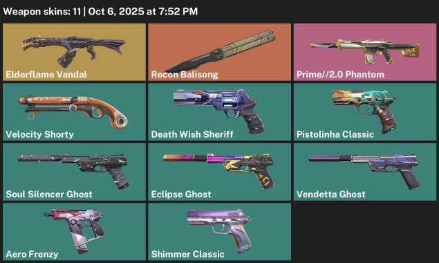 📸 Полный список смотри на скриншоте (Нож-бабочка «Разведка», Phantom «Прайм//2.0», Vandal «Древнее пламя»)