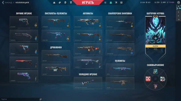Phantom «Погибель» Усмиритель Vandal «Связанные миры» Vandal «Начало» Vandal «Отважный герой» Judge «Усмиритель» Ghost «Комета» Classic «Баббл-поп» Classic «Усмиритель» Bulldog «Усмиритель» Phantom «Усмиритель» Shorty «Кошмар» Frenzy «Лунная битва» Stinger «Лунная битва» Sheriff «Город монстров» Vandal «Город монстров» Spectre «Город монстров» Ares «Город монстров» Guardian «Лунная битва» Ghost «Тихарь» Marshal «Лунная битва» Ghost «Цифровая магия» Sheriff «Конец игры» Ghost «Оптоволокно»