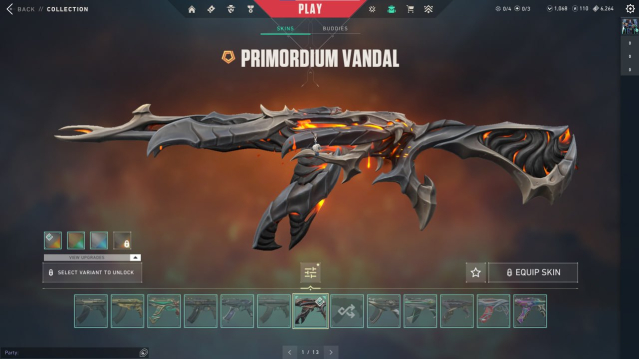 skins: Neo Frontier Sheriff + Chronovoid, Champions 2022 Phantom + Chronovoid, Primordium Vandal + Chronovoid + Elderflame + Gaia's Vengeance + Glitchpop + Imperium + Reaver + Prelude of Chaos, Origin Operator, RGX 11z Pro Blade + Champions 2022 butterfly Knife + Mystbloom Kunai + Neo Frontier Axe + Prime//2.0 Karambit + Xerofang Knife "