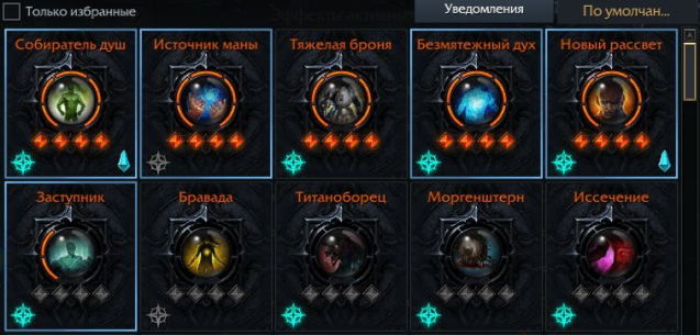 Реликтовые гравировки (Новый рассвет, Собиратель душ, Тяжелая броня, Источник маны, Безмятежный дух).