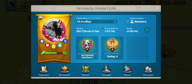 Краткое описание: королевство 3869, топ 1 альянс 25 ратуша, 15м мощи