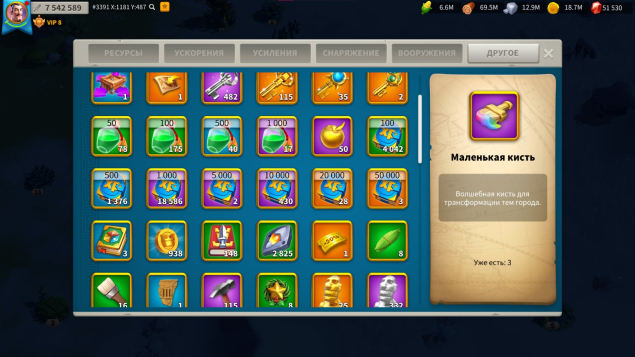 на каждой ферме по 400+- миллионов ресурсов в сумке, по 90 дней ускоров, 50к гемов. Везде есть паспорта. Фермы в сз (3391 кд)