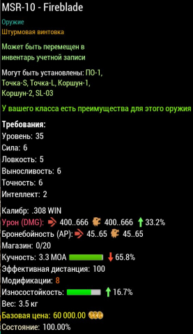 На руках топовая MSR-10 Fireblade +33.2% к урону (см скрин)