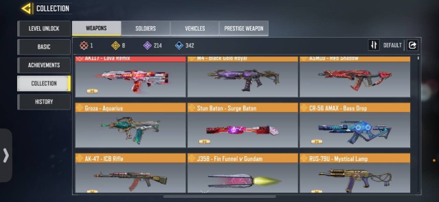 🔫 Skins Gun: 1 Mythic — 8 Legendary — 214 Epic — 342 Rare🔫