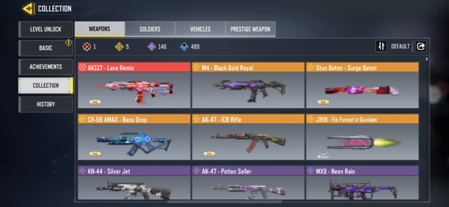 🔫 Skins Gun: 1 Mythic — 5 Legendary — 146 Epic — 489 Rare🔫