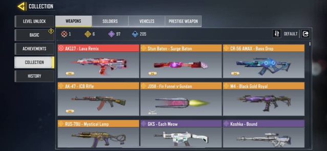 🔫 Skins Gun: 1 Mythic — 6 Legendary — 97 Epic — 205 Rare🔫