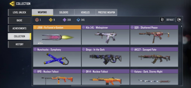 🔫 Skins Gun: 1 Mythic — 9 Legendary — 159 Epic — 341 Rare🔫
