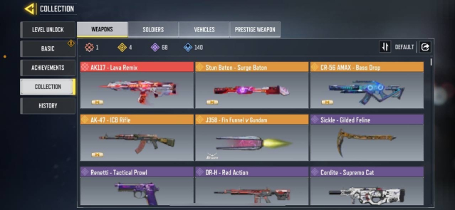 🔫 Skins Gun: 1 Mythic — 4 Legendary — 68 Epic — 140 Rare🔫