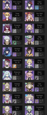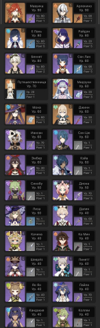 Краткое описание: 💎💎Арлекино(C1)+сигна🟡Мавуика🟡Е Лань(C2)🟡Райден🟡Мидзуки🟡Мона(С1)+ Молитва святым ветрам🟡Джин(С3)