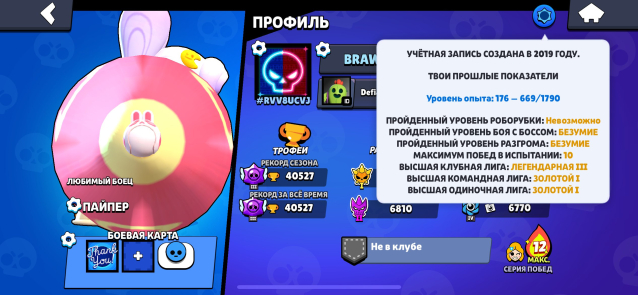 📅 Создан в 𝟐𝟎𝟏𝟗 | 🔥 𝟐𝟎𝟕 скинов | 💪 𝟗𝟑/𝟗𝟓 бравлеров (𝟐𝟖 на 11-й силе)