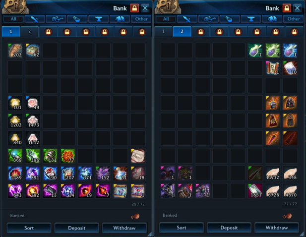 4 персонажа, мейн класс — воин (warrior); некоторое количество ресурсов; партнеры (петы в виде боссов) и многое другое: