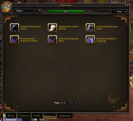 🏃 Есть фамильные вещи для прокачки других персонажей (ткань)