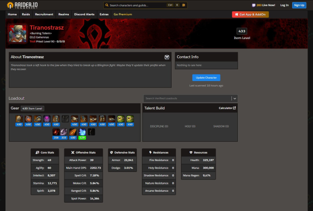 Ссылка на персонажа (можно посмотреть всю подробную инфу) — classic.raider.io/characters/eu/gehennas/Tiranostrasz