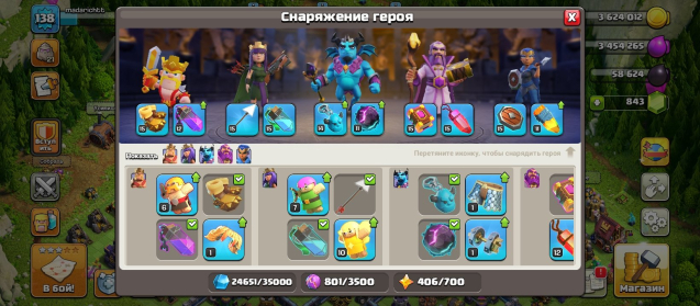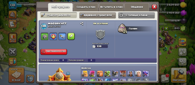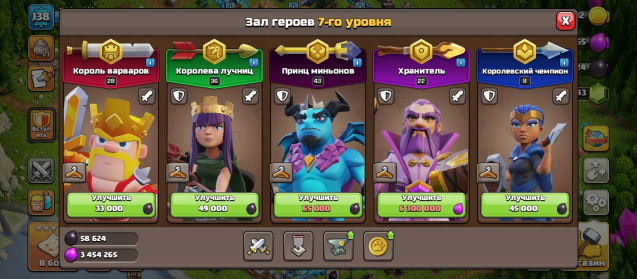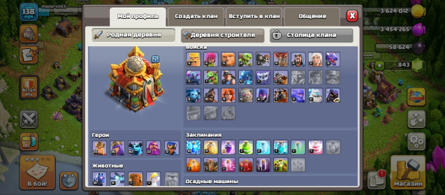 Уровень Ратуши: 16Краткое описание: 16 TH • 138 LEVEL • ГЕРОИ [28/36/43/22/8] • 1 СКИН • 5 СТРОИТЕЛЕЙ