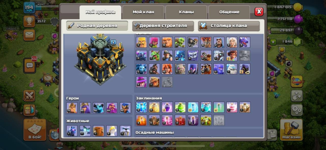 Уровень Ратуши: 17Краткое описание: 🧨17 ТХ ПОЛУРАШ🧨75/68/50/55/32🧨 5 СТРОИТЕЛЕЙ, 5 ЭПИК СНАРЯГ, 8 СКИНОВ🧨