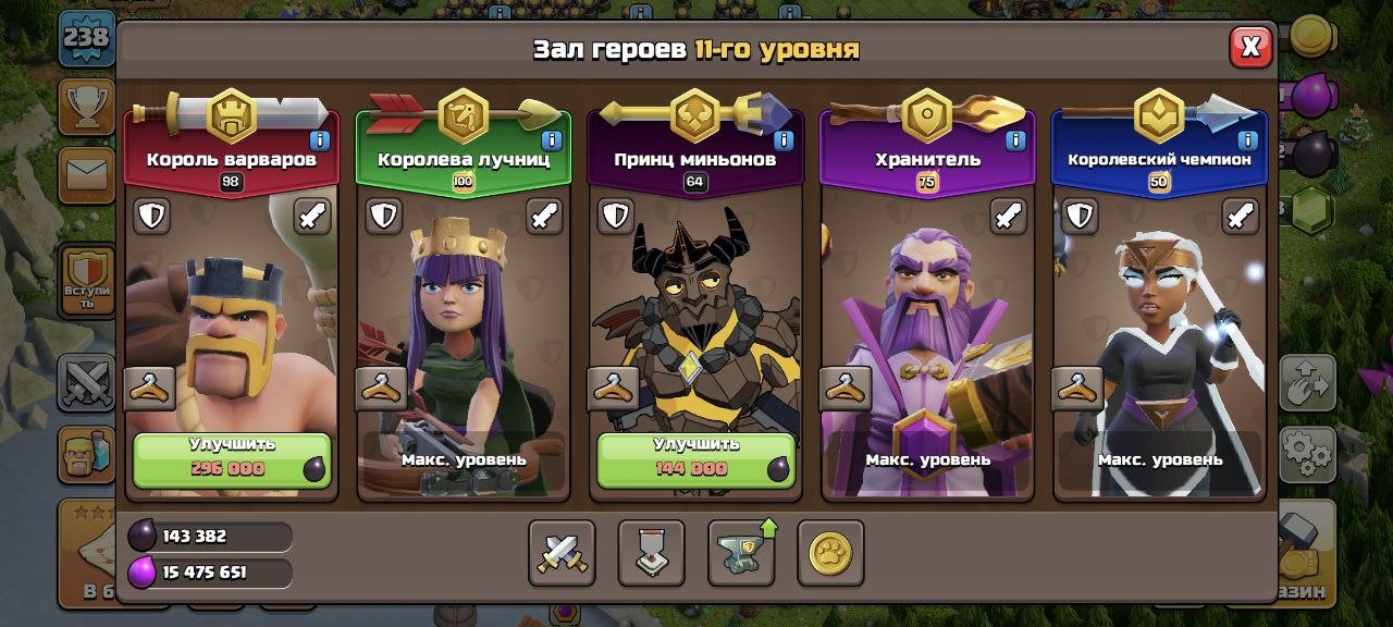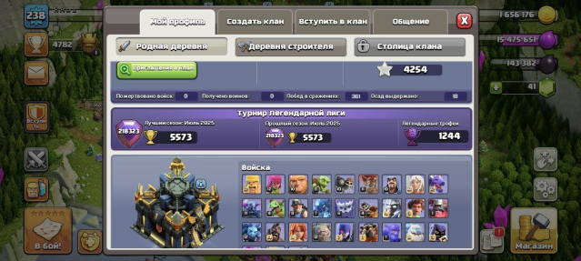 Уровень Ратуши: 17Краткое описание: ⚡️17𝐓𝐇【238𝐋𝐕𝐋】⚡️💎11 ЭПИК СНАРЯГ💎🔵【ГЕРОИ 98/100/75/50】🔵 💙8 СКИНОВ💙🍀ПЕРЕПРИВЯЗКА🍀