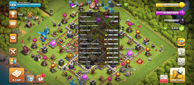 Уровень Ратуши: 11Краткое описание: 🏰【11 TX】🏡【7 БХ】🏆【140 LVL】👑【ФУЛЛ 95%】⚗️【Волшебные предметы】🔐【Смена почты】