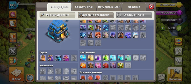 Уровень Ратуши: 12Краткое описание: 🕍【12 ТХ】🏡【8 БХ】🏆【149 LVL】💥【ЖИР】🤑【12.149 ГЕМОВ | 1369 ЛВК | 4862 МР】🔐【Смена почты】