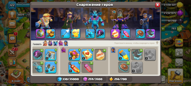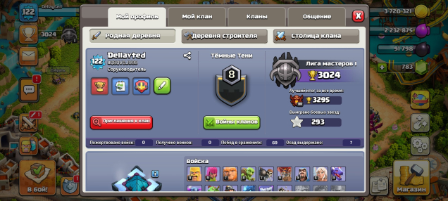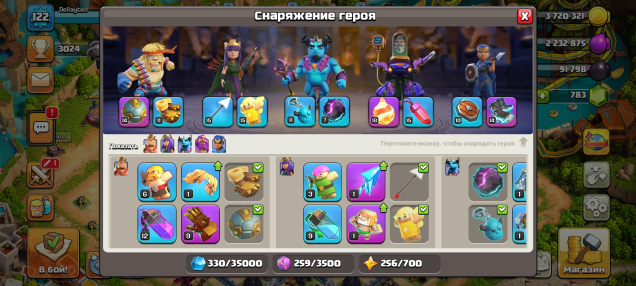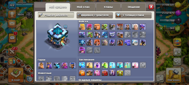 Уровень Ратуши: 13Краткое описание: 💢Почти Фулл 13, почти 6 строителей, 6 эпик снаряги, 700+ медалей Лиги, скрины✅ 💢