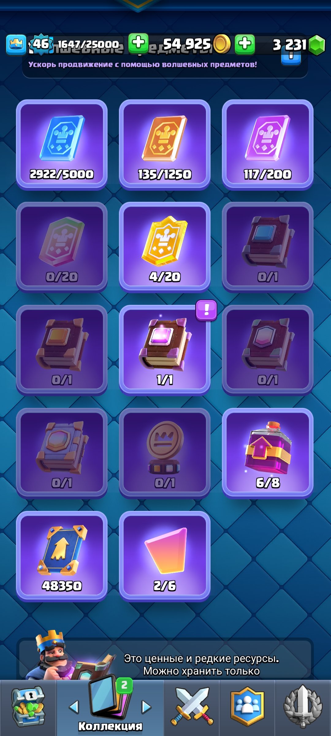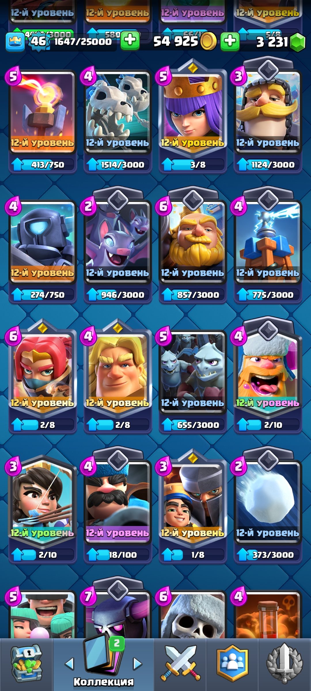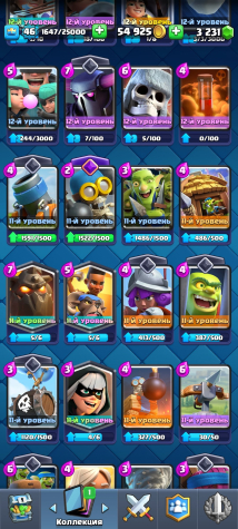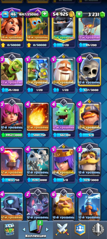 Подробное описание: Хочу продать свой аккаунт на котором 10165 кубков, на аккаунте 3231 гемов все карты доступны, хорошая прокачка, вся инфа в скринах
