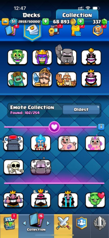 Краткое описание: 7.1 к 🏆, 1 карта 15 лвл + 39 14 лвл, 33 к элитных Джокеров колода хог 2.6, 102 эмодзи, описание 👇