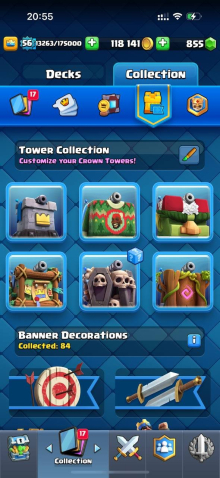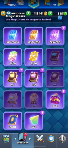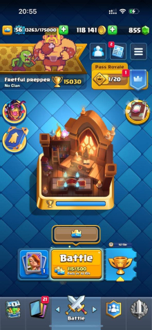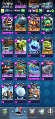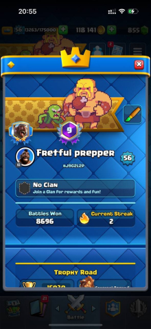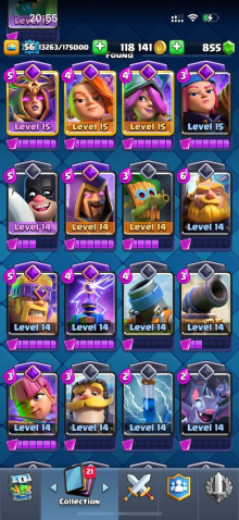 Краткое описание: 15 к 🏆, 56 лвл, 12 15 лвл + 24 14 лвл, колода с элитками, 10 эволюций, 62 эмодзи, описание 👇