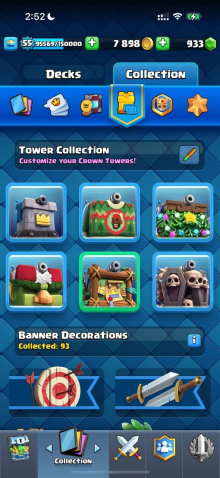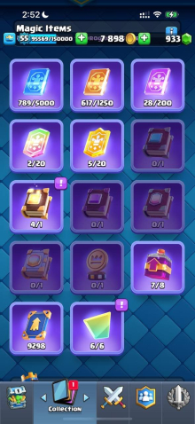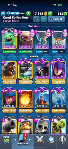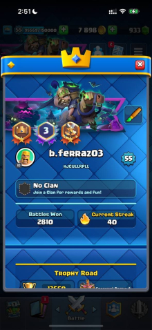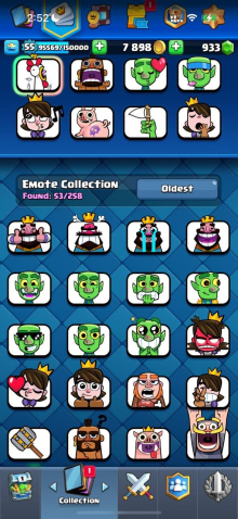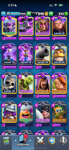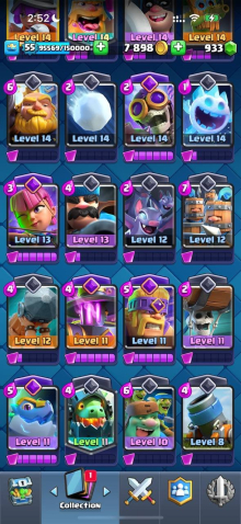 Краткое описание: 13.6 к 🏆, 55 лвл, колода с ракетчицей, 9 карт 15 лвл + 33 14 лвл, 13 эво, 53 эмодзи, описание 👇
