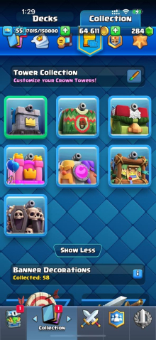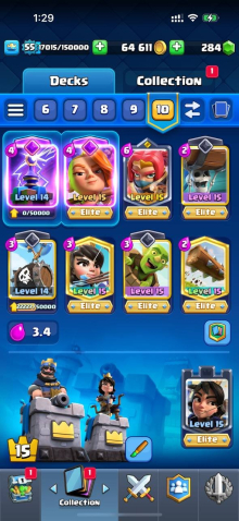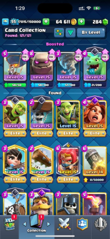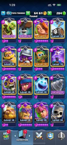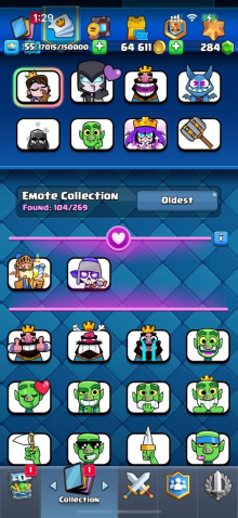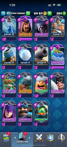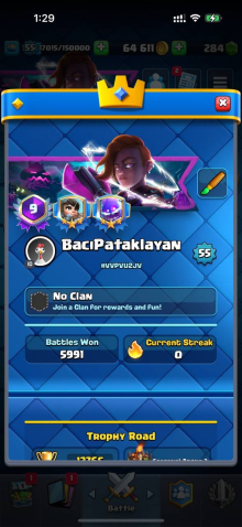 Краткое описание: 12 к 🏆, 55 лвл, колода с принцессой, 8 карт 15 лвл + 21 14 лвл, 8 эволюций, 104 эмодзи, описание 👇