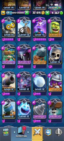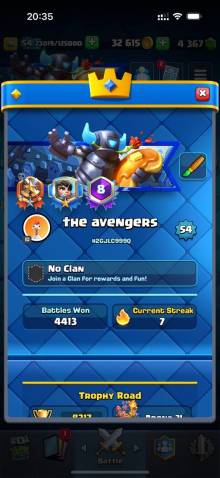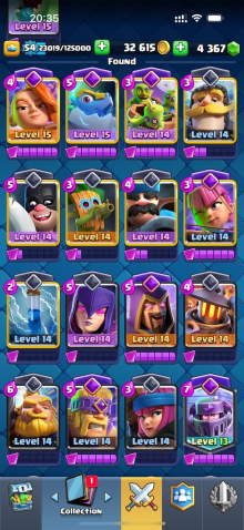 8.2 к 🏆, 54 лвл , колода спелбейт, 4 15 лвл + 28 14 лвл, 8 эволюций , 38 эмодзи, описание 👇, 20 арена, 54 уровень, 8200 кубков, 120 карт, 19 лег, Есть
