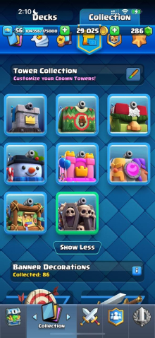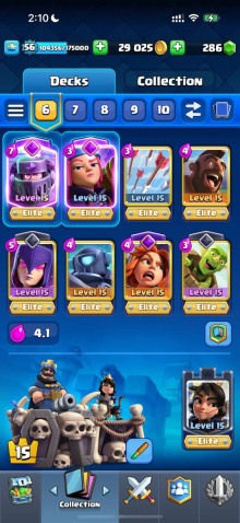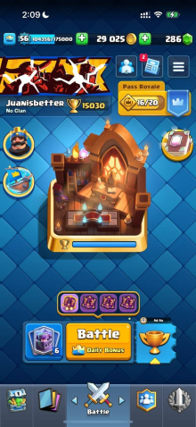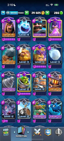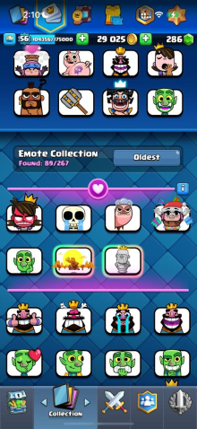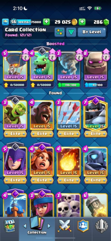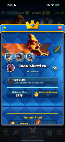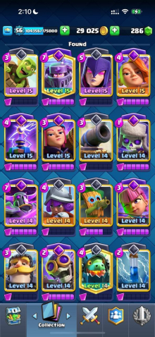 Краткое описание: 15 к 🏆, 56 лвл, колода с мегарыцарем, 11 15 лвл + 27 14 лвл, 12 эво, 89 эмодзи, описание 👇