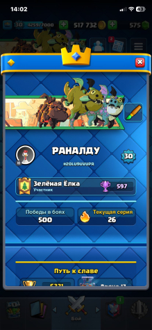 Краткое описание: 👑🥷🏻 [30 lvl] 17 Arena🥷🏻👑🃏Karta 111/121🃏🔥6331 КУБКОВ🔥🥷🏻👑С ПОЧТОЙ👑🥷🏻