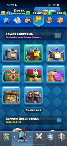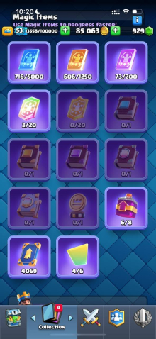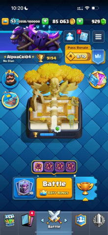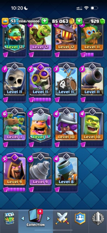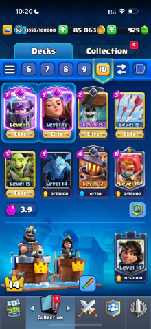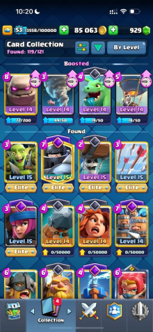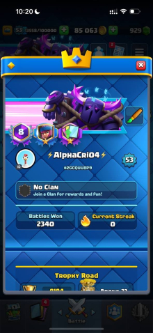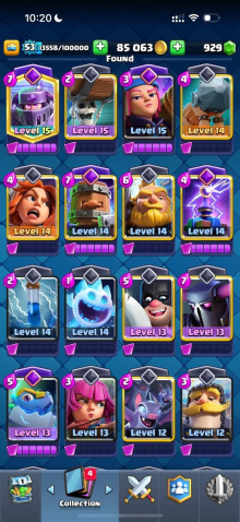 Краткое описание: 9.1 к 🏆, 53 лвл, колода с мегарыцарем, 5 карт 15 лвл + 15 14 лвл, 7 эво, 49 эмодзи, описание 👇
