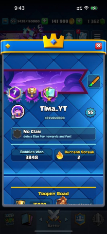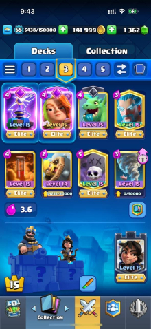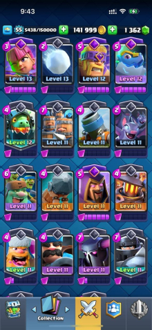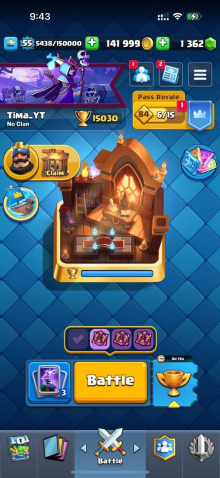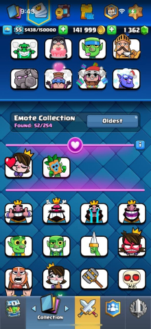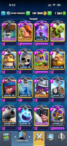Краткое описание: 15 к 🏆, 55 лвл, колода с кладбищем, 8 карт 15 лвл + 26 14 лвл, 8 эволюций, 52 эмодзи, описание 👇