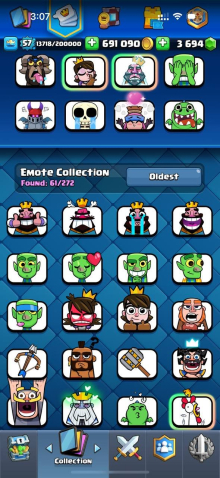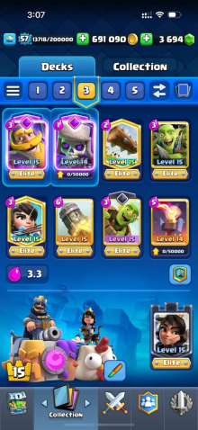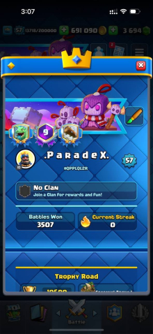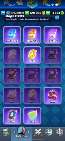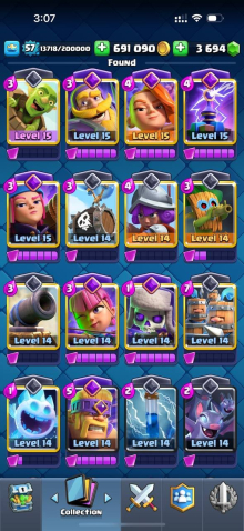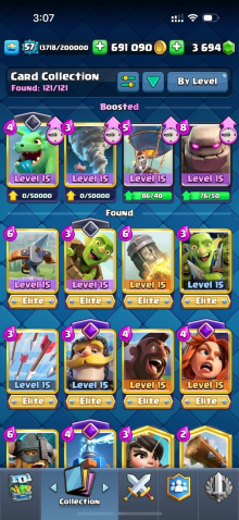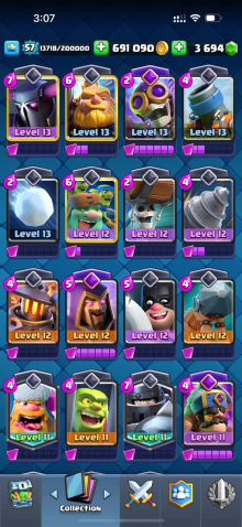Краткое описание: 10.6 к 🏆, 57 лвл, колода спелбейт, 14 карт 15 лвл + 25 14 лвл, 10 эволюций, 61 эмодзи, описание 👇