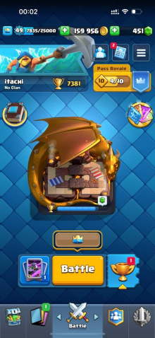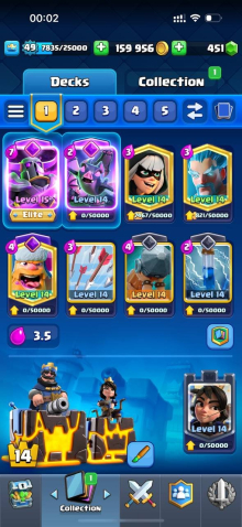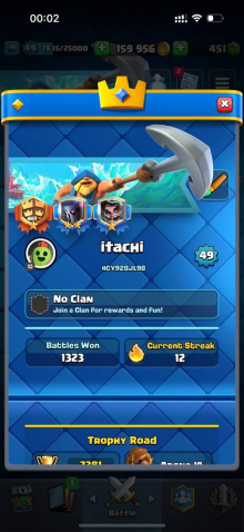 Краткое описание: 7.3 к 🏆, 49 лвл, колода с мегарыцарем, 2 15 лвл + 18 14 лвл, 12 эволюций, 60 эмодзи, описание👇