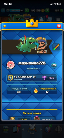 Краткое описание: 👑🥷🏻 [29 lvl] 16 Arena🥷🏻👑🃏Karta 109/121🃏🔥5590 КУБКОВ🔥🥷🏻👑С ПОЧТОЙ👑🥷🏻