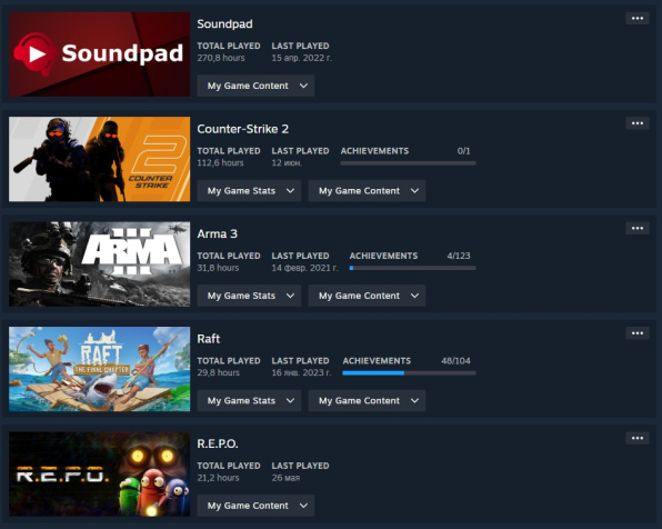 Тип предложения: ПродажаКраткое описание: 💥Топовый Аккаунт | ARMA 3, Raft, Phasmophobia, GMod и др🔥