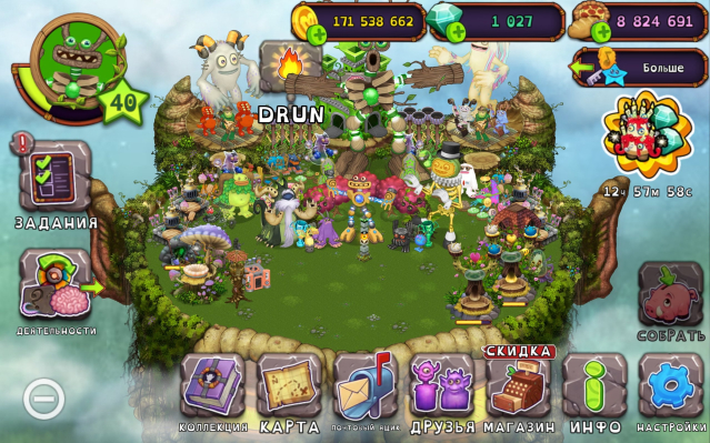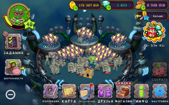 эпик барабамень, эпик мамунт, эпик зерномех, эпик брюшко, эпик СКЕЛЕТЫКВА, эпик ГУ ДЖУБ на острове растений и эпик коробка.Премиум.обычный Коробас на острове холода, огненном убежище.Также много прокачанных островов.