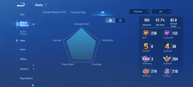 ACCOUNT HAS GOOD WIN RATES AND A LOT OF LIMITED CUSTOMIZATION ITEMS.