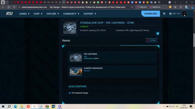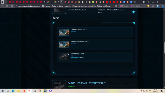 F8C Lightning страховка на 6 месяцев (по истечении страховки корабль не пропадёт)