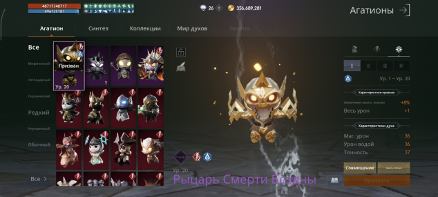Стихийное пробуждение агатионов: Фиолетовых — ур.1 ( 1шт ), Синих — 1ур. ( 35шт ).