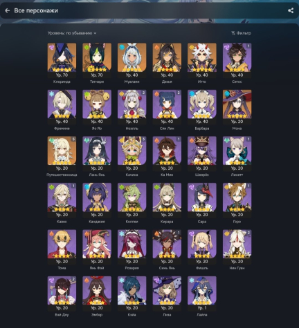Личный аккаунт с релиза геншина, в хср имеются сигны на легендарных ивентовых персонажей и созвездиями, также имееются персонажи с сигнами в геншине AR 44, ззз AR 35 +легендарные ивентовые персонажи