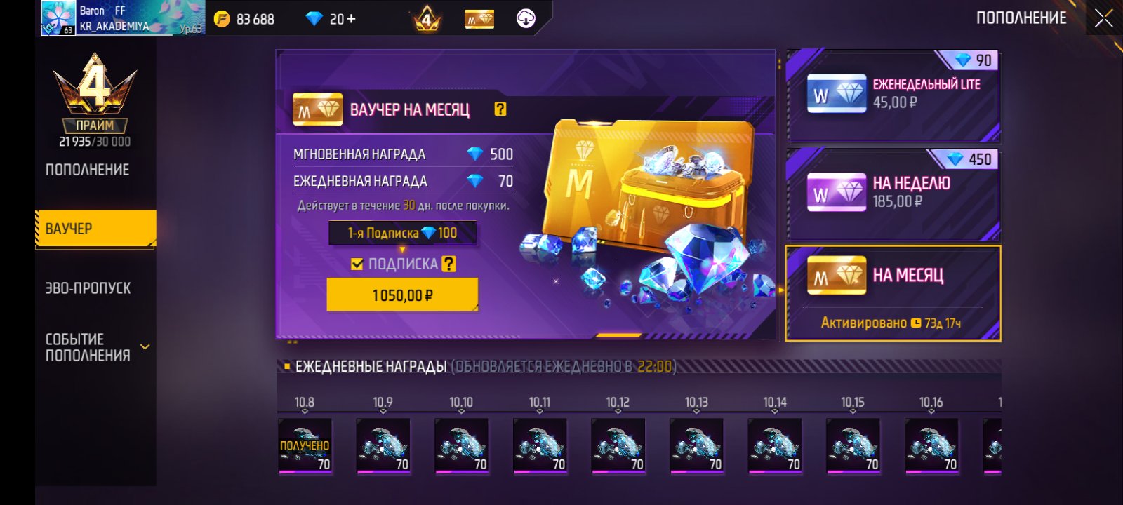 Краткое описание: В акк есть 3 эволюции и 2 меяцяных ваучеров и очень много эмоций